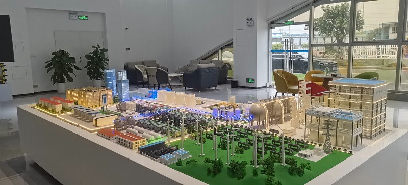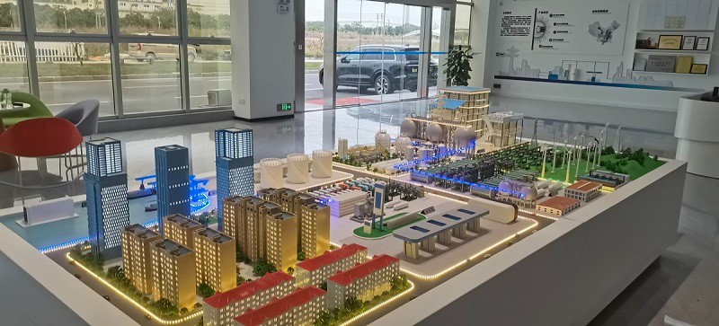在制作階段,紅楓模型采用環(huán)保耐用的 ABS 工程塑料、高透亞克力、金屬仿真件等材料,結(jié)合激光雕刻、CNC 精雕、手工上色等工藝,打造出兼具質(zhì)感與科技感的新能源沙盤:
